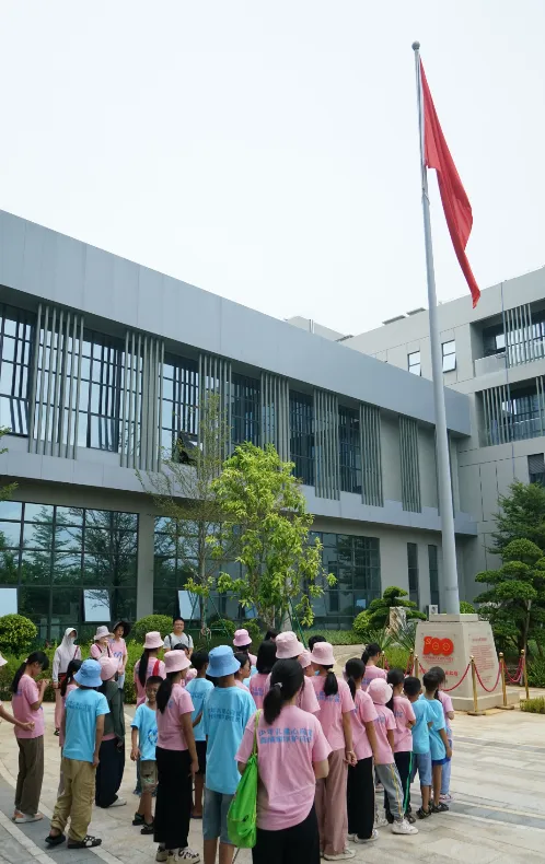 紧接着,孩子们来到了建党百年庆典红旗——070号红旗前。讲解员讲述了九游会药业集团与庆典红旗的深厚渊源。孩子们听得津津有味,眼中闪烁着对党和国家的热爱与敬仰。